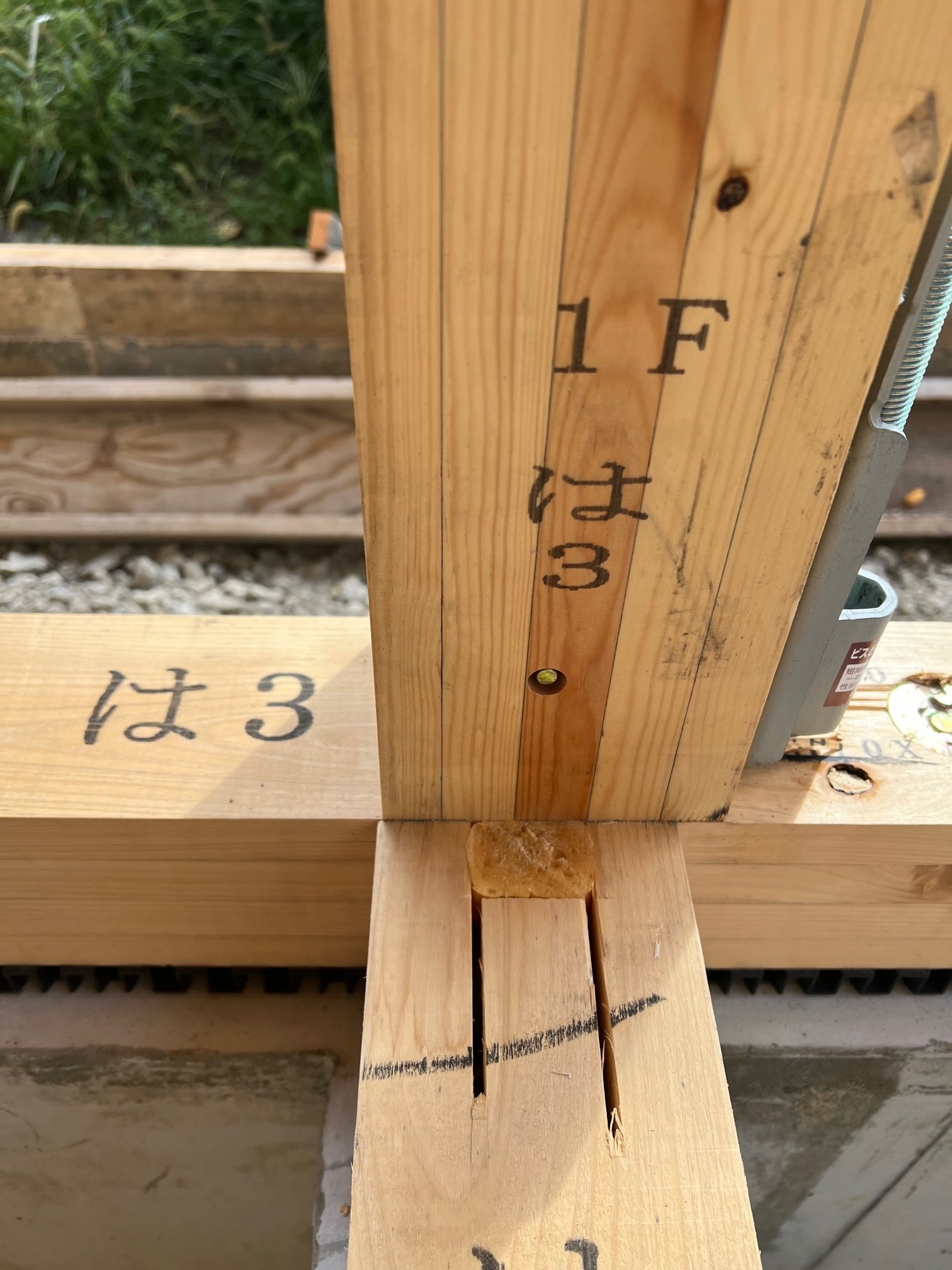 木造建築では柱を建てて工事が進んでいきますが、この柱の位置を示すために、横方向の通りを「い・ろ・は…」、縦方向の通りを「一・二・三…」と符号を振っていました。(番付といいます)