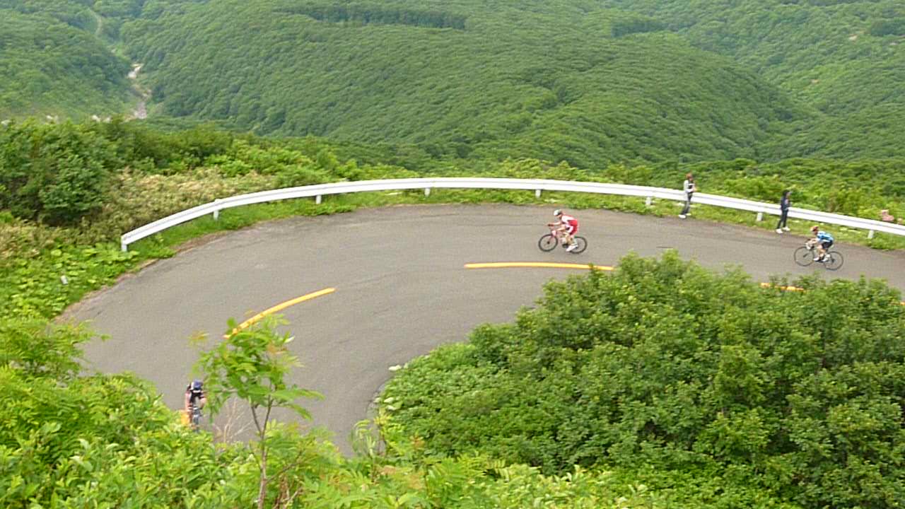 タイムを競うレースに最初にエントリーしたのが岩木山ヒルクライム大会でした。 69あるカーブを登っていくのですが、小さい頃の運動会と同じ緊張を久しぶりに感じました。 これが後々響きます。 号砲でスタート。先頭付近からのスタートだった為、周りの選手のスピードが速くて、付いていくのにやっとです。カーブを数えつつ登りますが、緊張なのか心拍のキツさが原因なのか、カーブの数を59となぜか勘違い。 最後の力をふり絞って数人を抜き、59個目のカーブを通過します。が、ゴールが見えません。 あぁ、意識が遠のきます。 残り10個のカーブで何人かに抜かれてやっとゴール。 山を下ってから嶽温泉へ行き、肩まで浸かって69を数えるのでした。