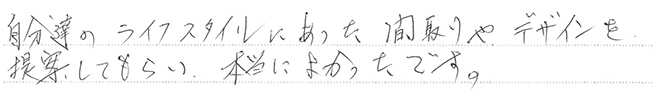 ≪あたたかい家≫、来客が多いため≪おもてなしできる空間≫、高齢ということから≪バリアフリー≫を実現しました。特筆すべきはトイレに2つの扉を設けたことです。プライベート空間と廊下の両方からアクセスできることが住みやすさにも役立っているようで良かったです。